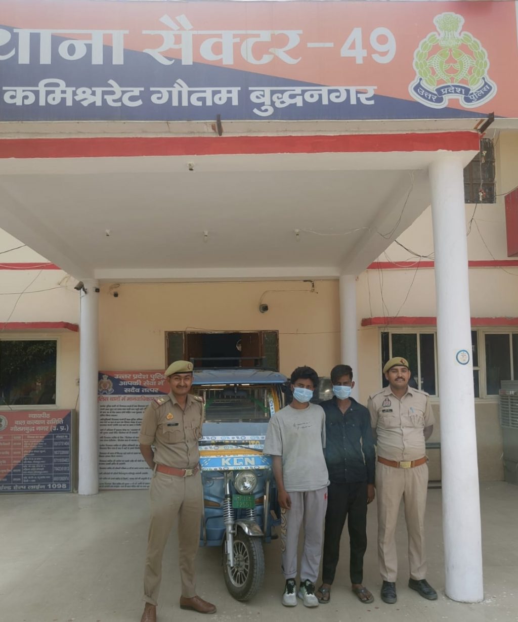 गौतमबुद्धनगर नोएडा थाना सेक्टर 49 पुलिस द्वारा दिनांक 09.05.2024 को स्पैक्ट्रम माल के सामने बिजली घर सेक्टर 50 नोएडा गौतमबुद्धनगर के पास से 02 अभियुक्त 1.विकास पुत्र मनोज 2.विनीत पुत्र भुलारे यादव को चोरी की ई-रिक्शा रजि0 नं0 यूपी 16 एलटी 2551 के सहित गिरफ्तार किया गया है। जिसके सम्बन्ध में थाना हाजा पर मु0अ0सं0 0187/2024 धारा 379/411 भादवि0 पंजीकृत है।