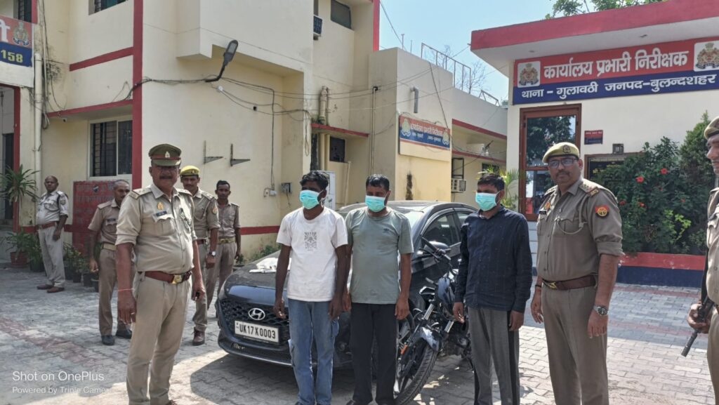 एनसीआर लाइव: बुलन्दशहर जनपद में अपराधों पर अंकुश लगाये जाने हेतु अपराधियों के विरूद्ध चलाये जा रहे अभियान के तहत दिनांक 20-09-2025 को थाना गुलावठी पुलिस द्वारा एक अभिसूचना के आधार पर ग्राम भमरा वाले रास्ते के पास से एटीएम बदलकर लोगों के रुपये निकालने वाले गिरोह के 03 शातिर सदस्यों को 37 एटीएम कार्ड, 5600/- रुपये नकद, 02 मोबाइल फोन, अवैध असलहा, अवैध चाकू, घटना मे प्रयुक्त मोटर साइकिल व गाडी सहित गिरफ्तार किया गया हैं। अभियुक्तों की गिरफ्तारी व बरामदगी के संबंध में थाना गुलावठी पर मुअसं-433/25 धारा 317(5)बीएनएस व 3/4/25 शस्त्र अधि0 पंजीकृत कर अग्रिम विधिक कार्यवाही करते हुए अभियुक्तों को न्यायिक अभिरक्षा में भेजा जा रहा है।