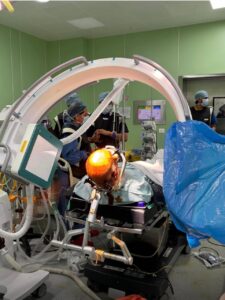 डीप ब्रेन स्टिमुलेशन एक अत्यंत विशिष्ट और सटीक न्यूरोमॉड्यूलेशन प्रक्रिया है जिसमें सूक्ष्म इलेक्ट्रोड को सबथैलेमिक न्यूक्लियस में स्टीरियोटैक्टिक तरीके से स्थापित किया जाता है, जो मोटर क्रिया में महत्वपूर्ण भूमिका निभाने वाली एक महत्वपूर्ण संरचना है। सटीक इलेक्ट्रोड प्लेसमेंट और रोगी के सर्वोत्तम परिणामों को सुनिश्चित करने के लिए सर्जरी में उन्नत इमेजिंग तकनीकों और ऑपरेशन के दौरान न्यूरोफिज़ियोलॉजिकल निगरानी की आवश्यकता होती है।
